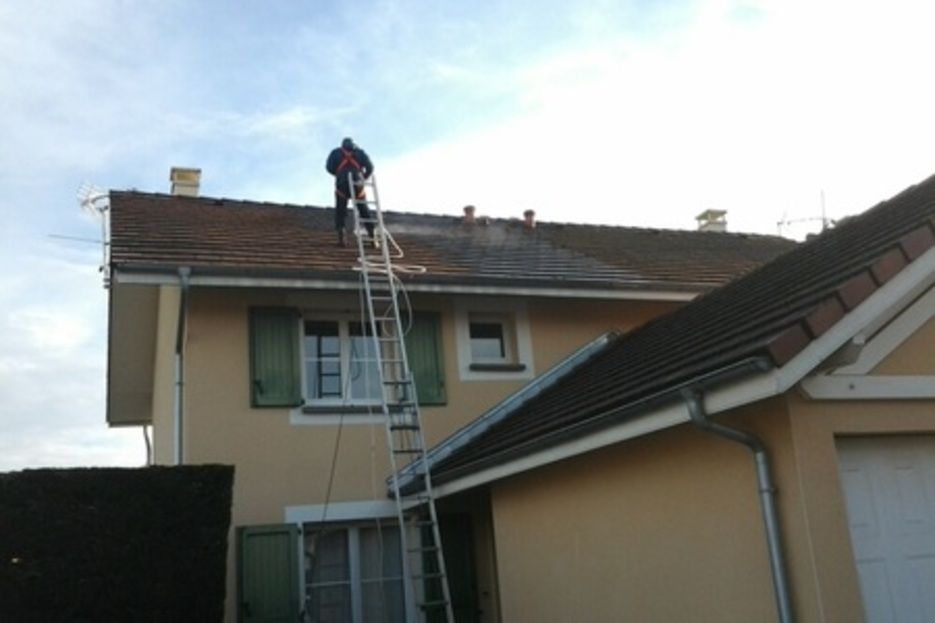 Un démoussage complet de la toiture peut parfois être risqué selon la pente du toit, les conditions climatiques (pluies, humidité ...) et la hauteur de l'habitation ...
